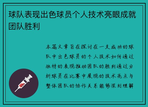 通过分析球队表现出色球员个人技术亮眼成就团队胜利的四个方面,我们可以看到,球员个人能力与团队协作的紧密结合,最终能够推动球队在比赛中取得胜利。技术多样性与创造性使得球员能够在比赛中做出与众不同的贡献;决策能力帮助球员在关键时刻作出正确选择;默契配合保证了整个团队的高效协作;而心理素质的稳定性则确保了球员在关键时刻能够稳定发挥,最终实现团队的目标。