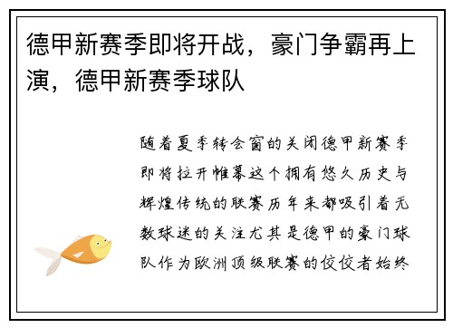 最终,谁将成为新赛季的德甲冠军,谁将笑傲欧洲赛场?这一切都将在未来的赛季中揭晓,而作为球迷的我们,将继续见证这一切。